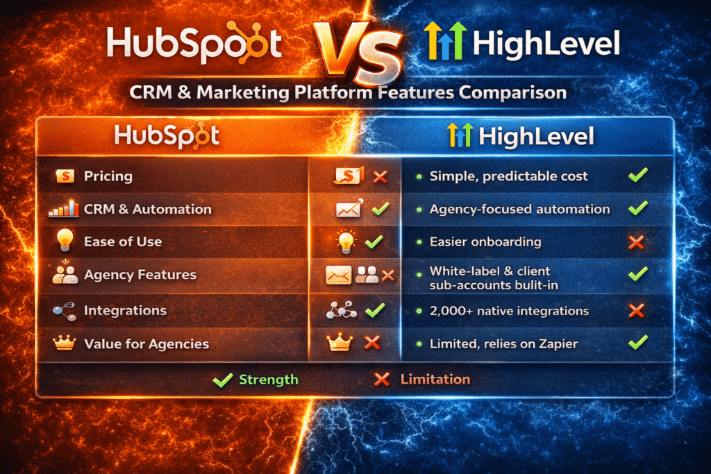 In the HubSpot vs HighLevel (often called GoHighLevel) debate, both platforms are highly capable. But when you compare them holistically — especially for agencies, service businesses, and small‑to‑mid sized teams — HighLevel comes out on top. Here’s why.